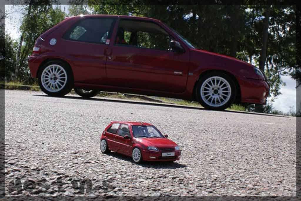 18 en el Citroen Saxo real. Así, un Citroen Saxo coche miniatura en miniatura a 1/18 escala mide entre 25 y 30 centímetros y un coche