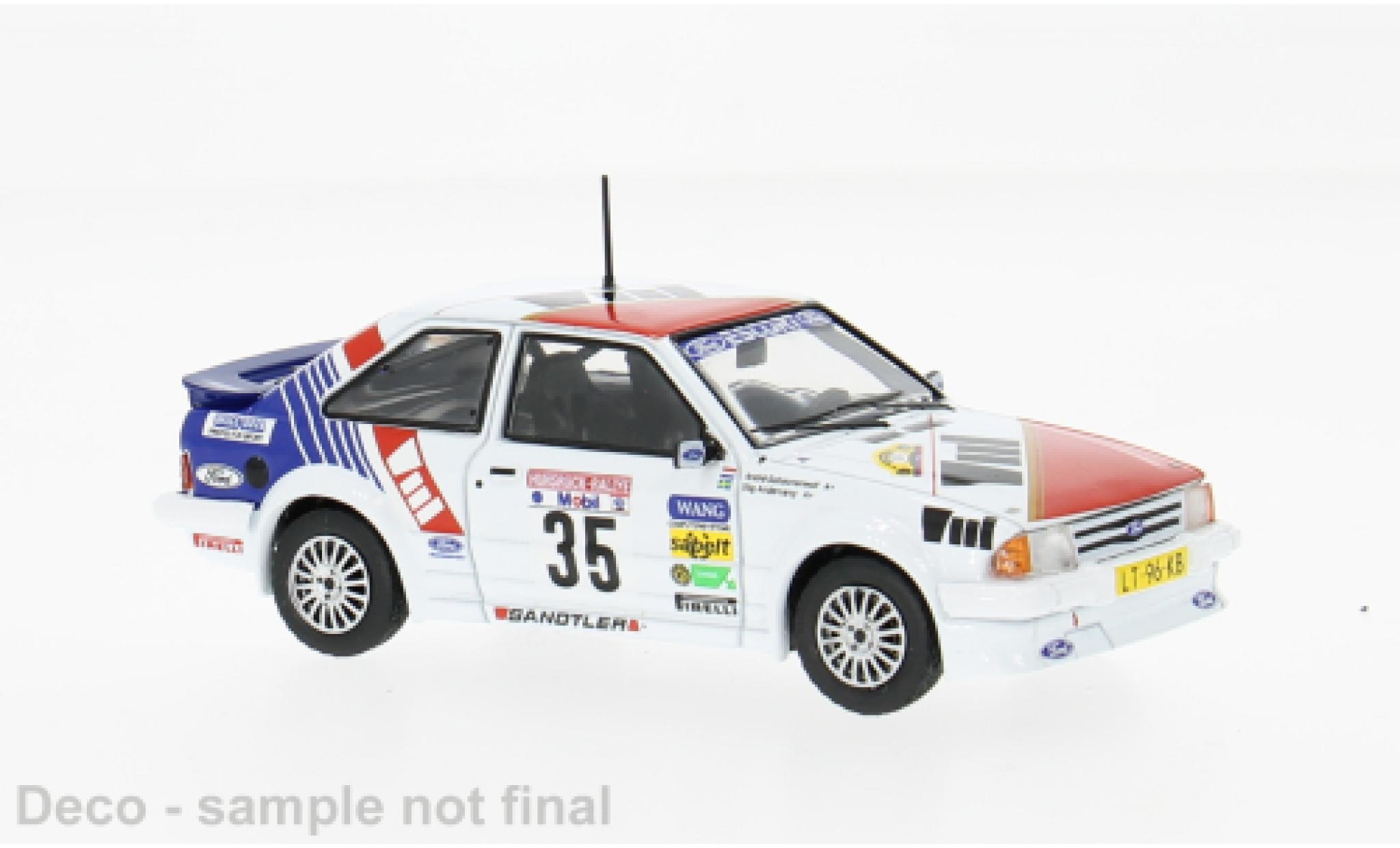 USTED ESTA AQUI : COCHE EN MINIATURA > FORD COCHE MINIATURA > FORD ESCORT COCHE MINIATURA > Ford Escort 1/43 IXO MK III RS Turbo Hunsrück Rallye 1985 #35 S.Andervang/A.Schoonenwolf 1:43