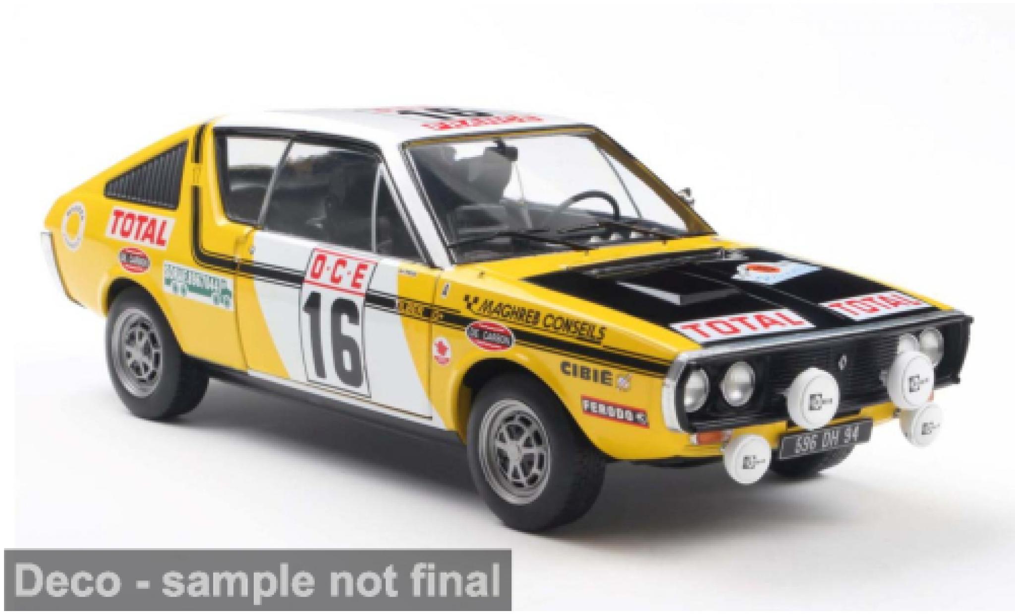 18 en el Renault 17 real. Así, un Renault 17 coche miniatura en miniatura a 1/18 escala mide entre 25 y 30 centímetros y un coche
