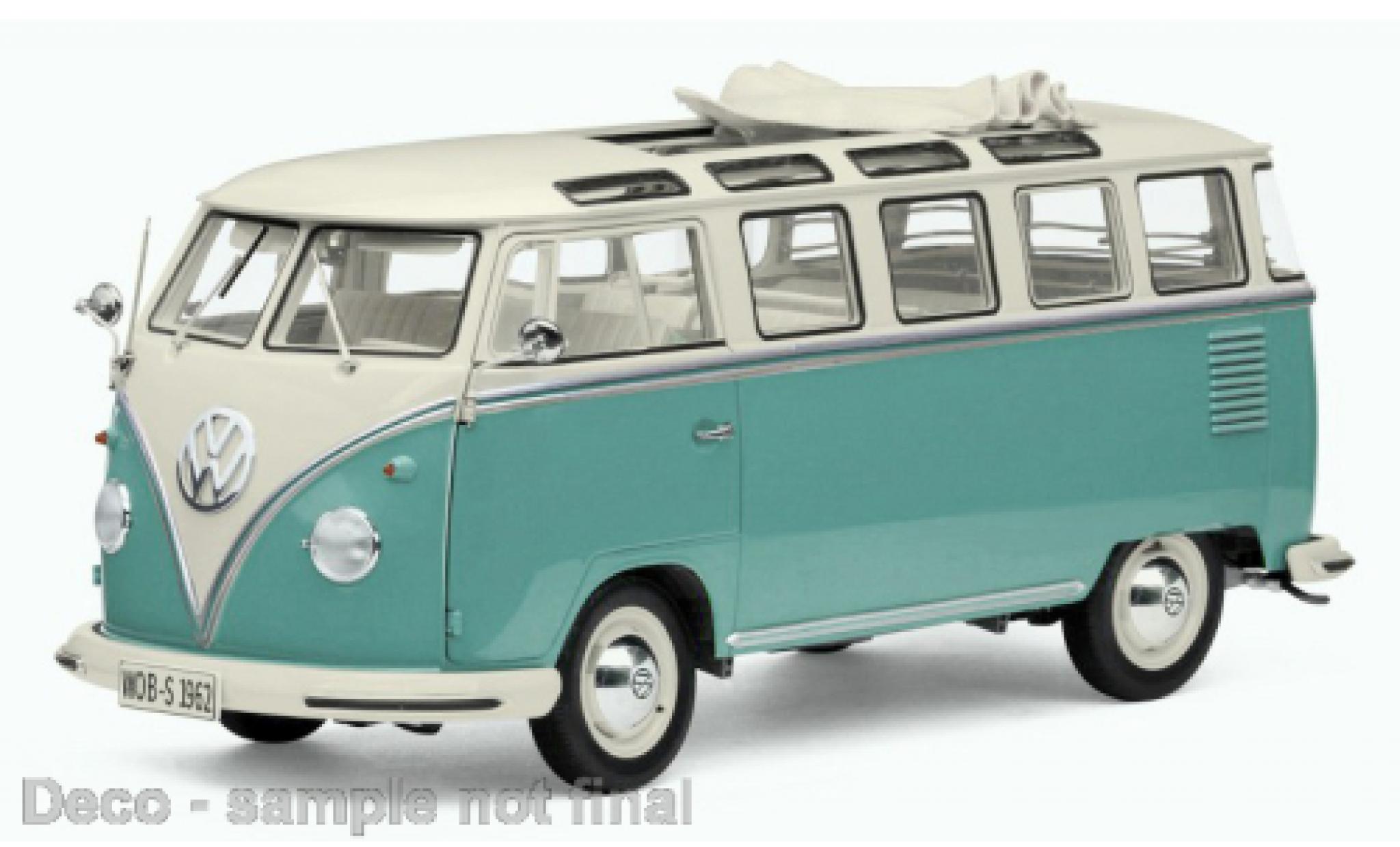 USTED ESTA AQUI : COCHE EN MINIATURA > VOLKSWAGEN COCHE MINIATURA > VOLKSWAGEN T1 COCHE MINIATURA > Volkswagen T1 Sun Star Samba weiss/türkis 1962 1:12